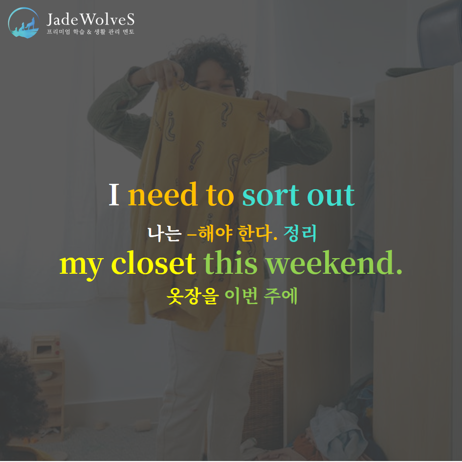 1) sort out : "꺼내서 분류하다"라고 해서 "정리,해결하다"라는 의미로 사용됩니다.