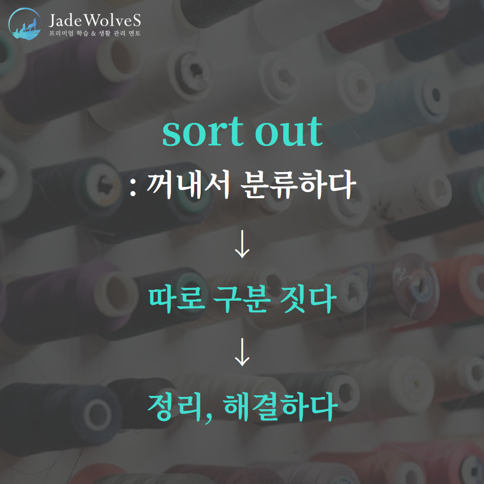 1) sort out : "꺼내서 분류하다"라고 해서 "정리,해결하다"라는 의미로 사용됩니다.