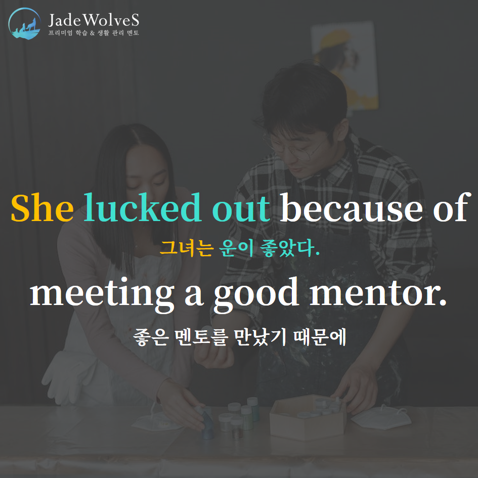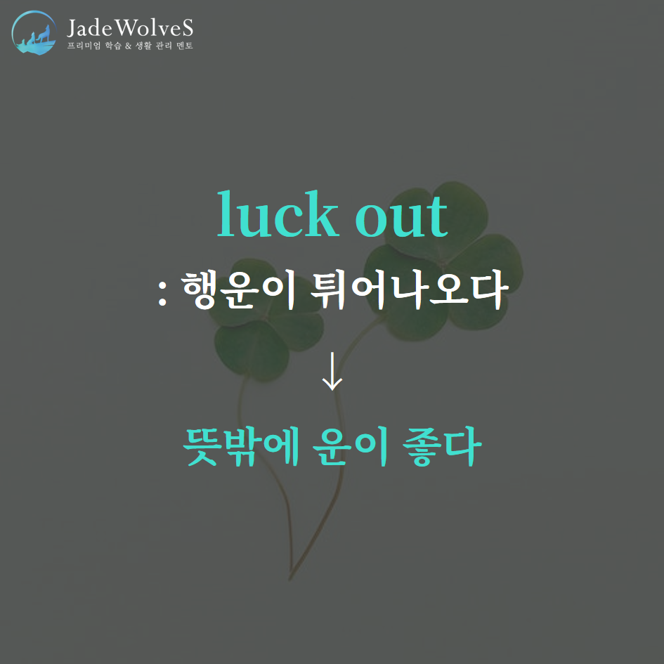 2) lcuk out : "행운이 튀어나오다"라고 해서 "운이 좋다"라는 의미로 사용됩니다.