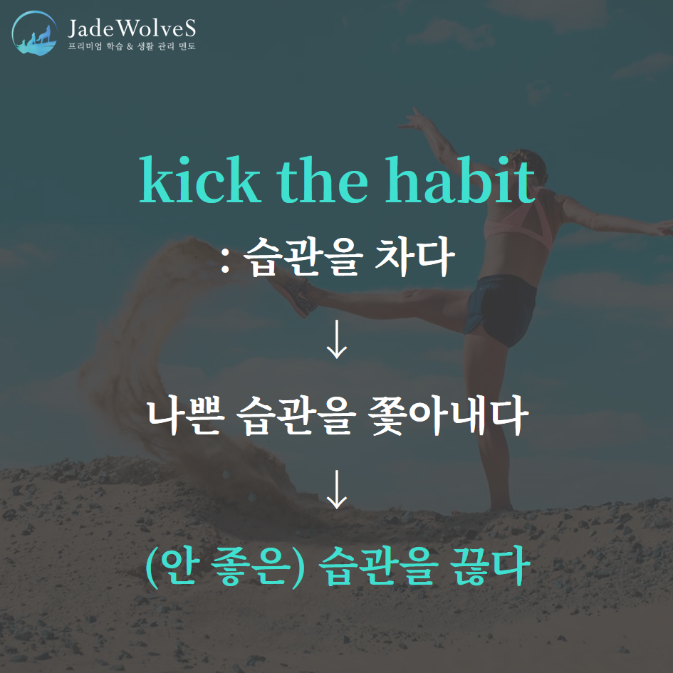 1)kick the habit : "습관을 차다"라고 해서 "습관을 끊다"라는 의미로 사용됩니다.