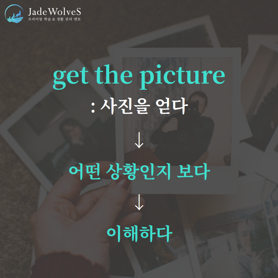 2) get the picture : "사진을 얻다"라고 해서 "이해하다"라는 의미로 사용됩니다.