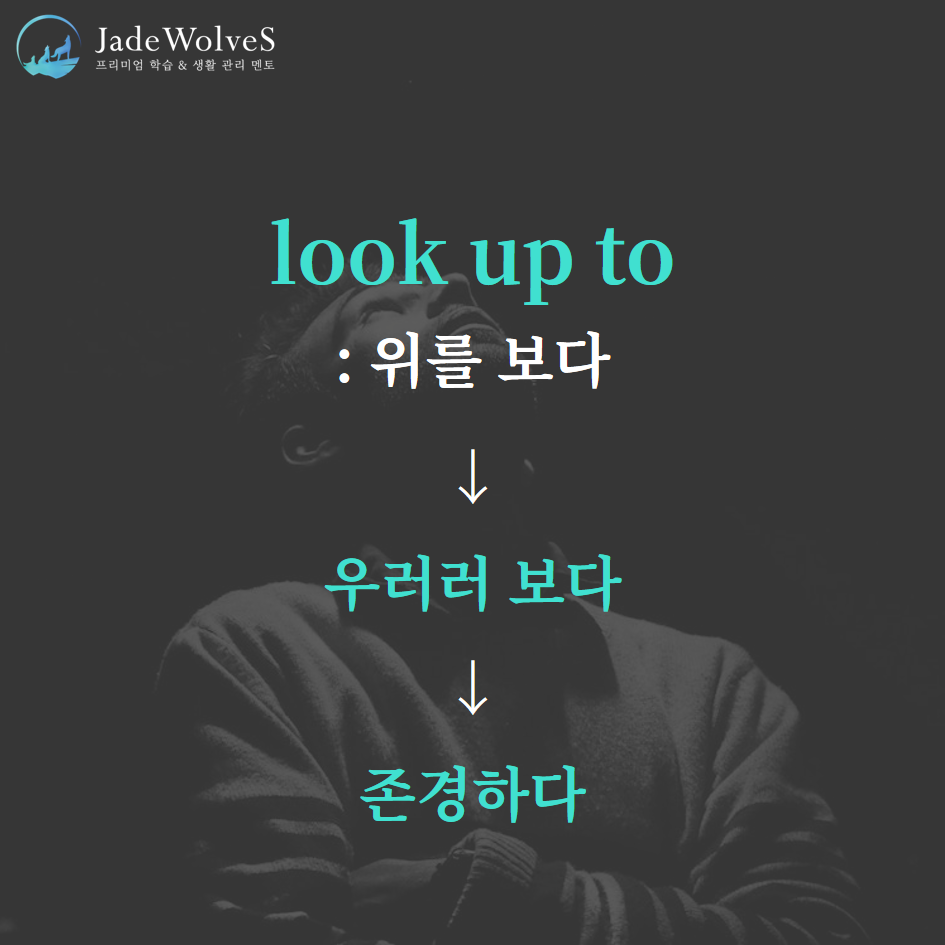 2) look up to : "위로 보다"라고 해서 "존경하다"라는 의미로 사용됩니다.