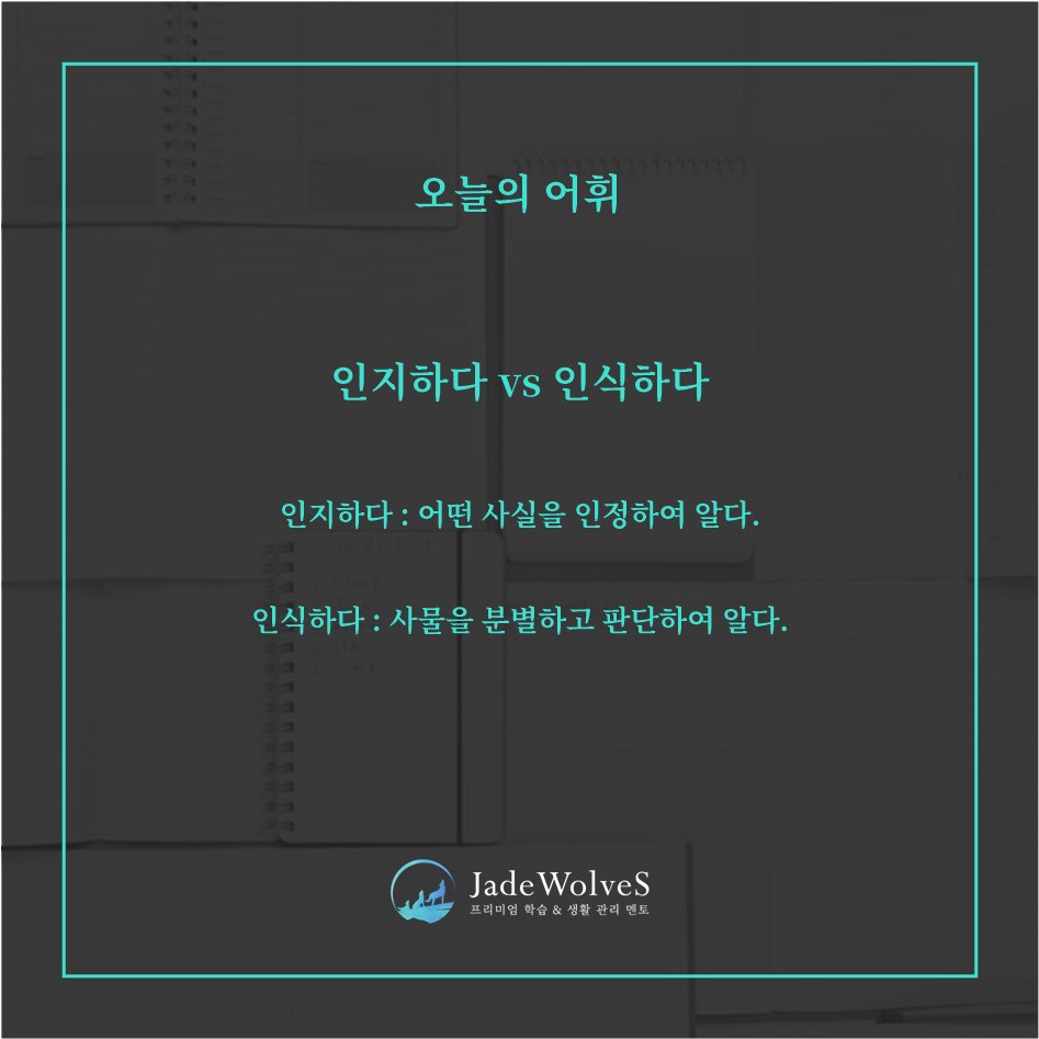 청랑의 어휘력 높이기 : 오늘은 '인지하다'와 '인식하다'의 차이점에 대해 알아보겠습니다.