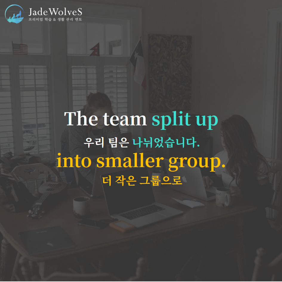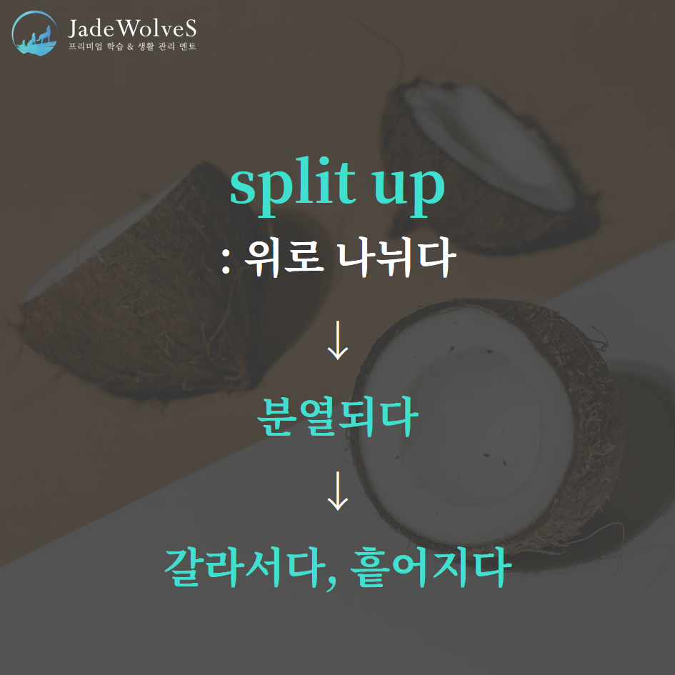 2) split up : "위로 나뉘다"라고 해서 "갈라서다"라는 의미로 사용됩니다.