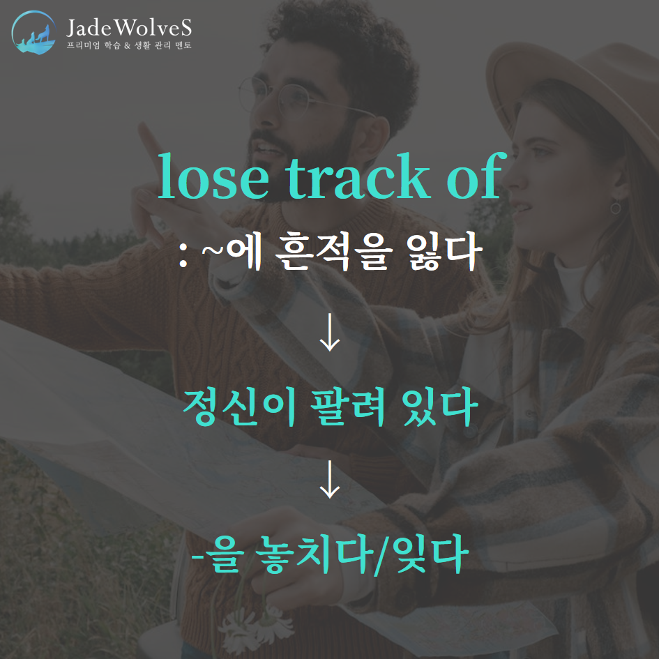 1) lose track of : "흔적을 잃다"라고 해서 "놓치다"라는 의미로 사용됩니다.