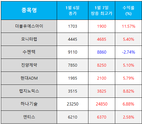 | 오늘의 관심 종목 수익률(2025.01.08) (0) | 2025.01.08 |