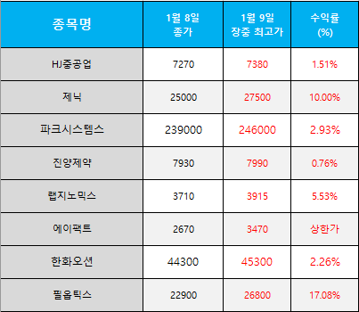 | 오늘의 관심 종목 수익률(2025.01.10) (0) | 2025.01.10 |