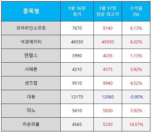| 오늘의 관심 종목(2025.01.17) (0) | 2025.01.17 |