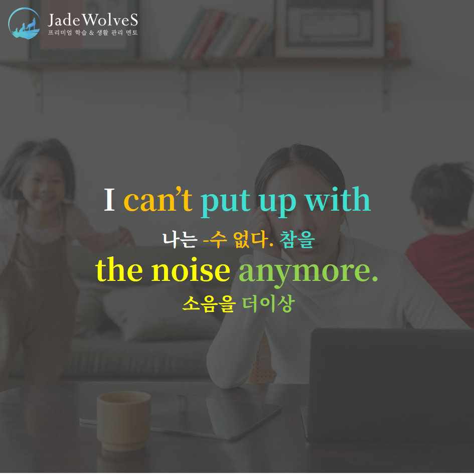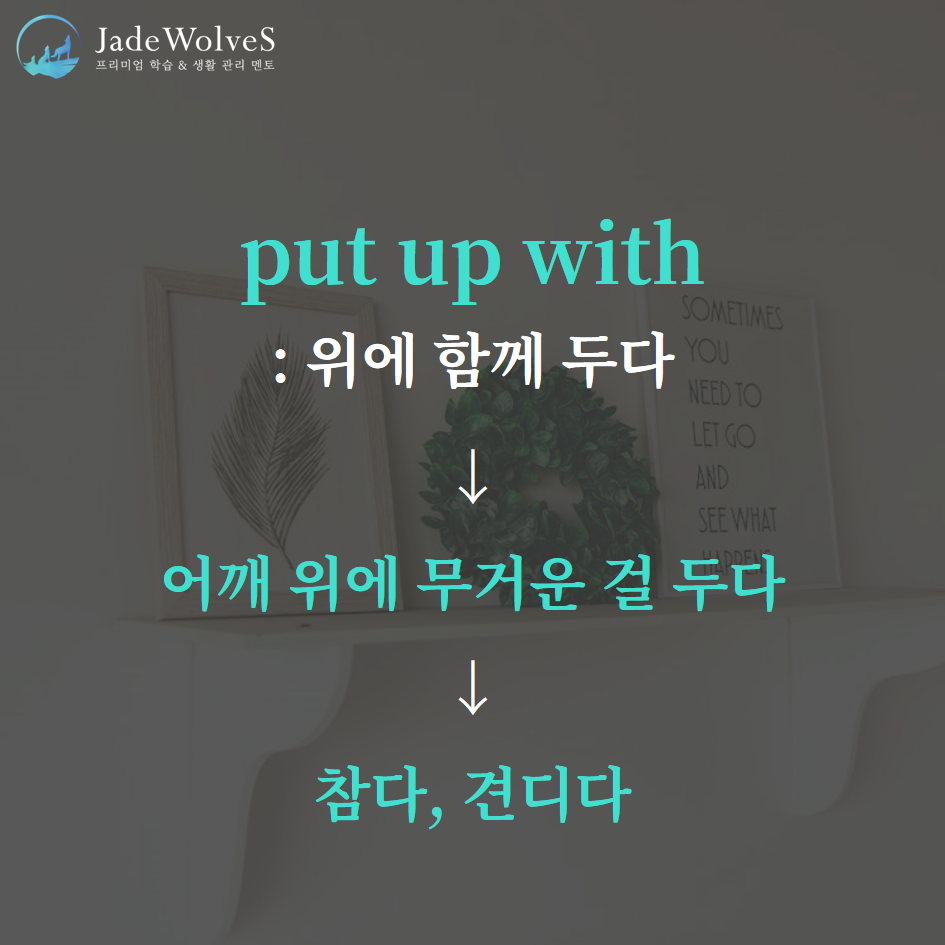 2) put up with : "위에 함께 두다"라고 해서 "참다"라는 의미로 사용됩니다.