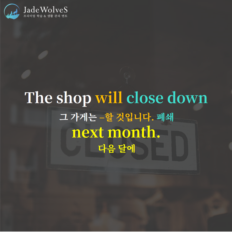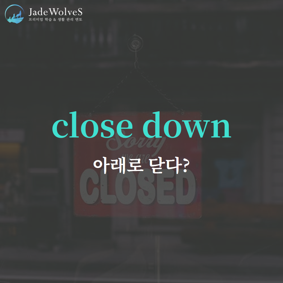 1) close down : "아래로 닫다"라고 해서 "폐쇄하다"라는 의미로 사용됩니다.
