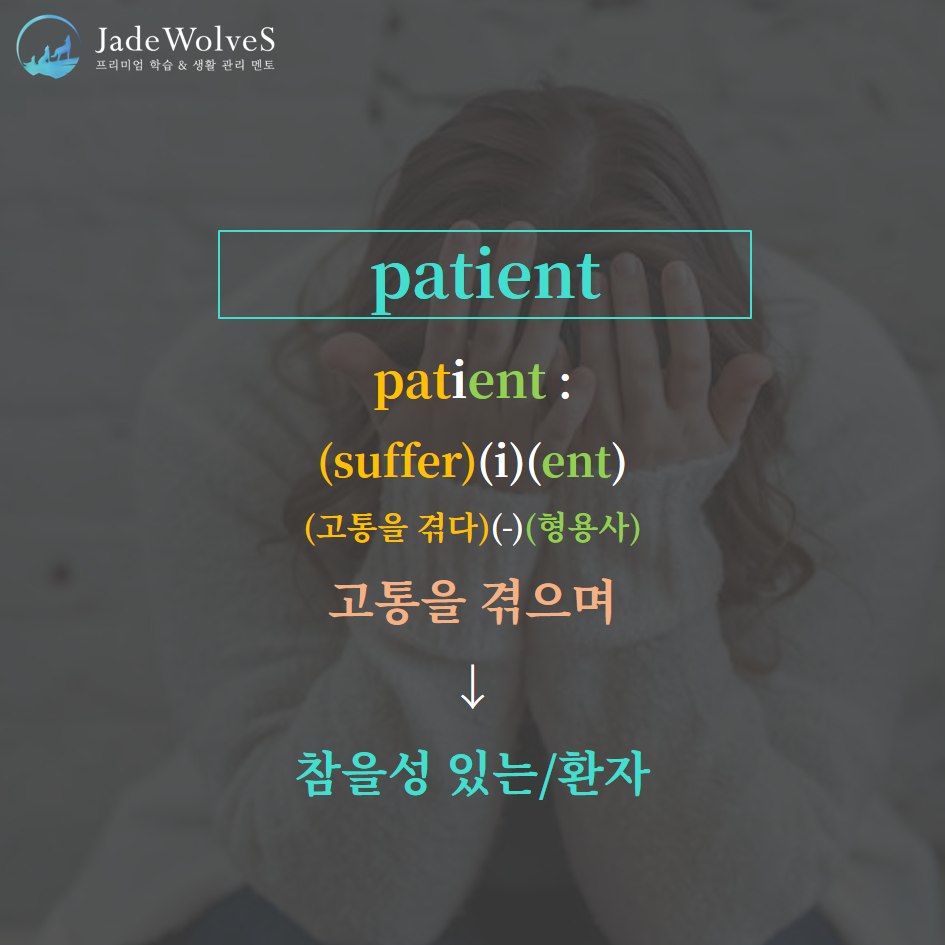 "path/pat- : feel, suffer"라는 어원으로 "느끼다, 고통을 겪다"라는 뜻의 동사를 나타냅니다.