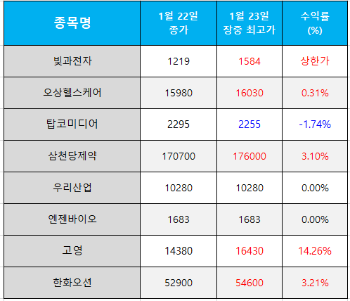| 오늘의 관심 종목 수익률(2025.01.24) (0) | 2025.01.24 |