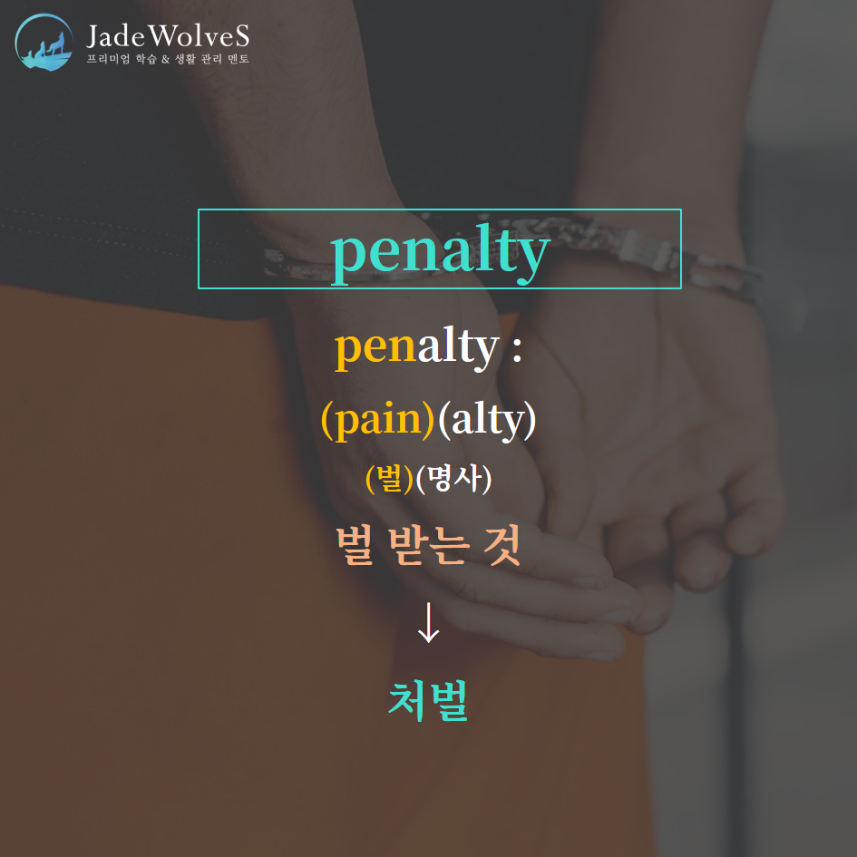 " pen/pun/pain - :pain"라는 어원으로 "벌, 고통"라는 뜻의 명사를 나타냅니다.