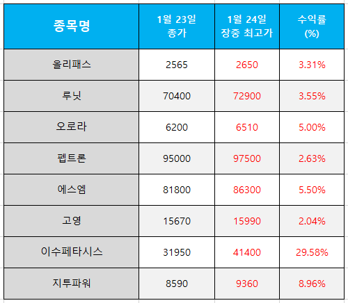 오늘의 관심 종목 수익률(2025.01.24)