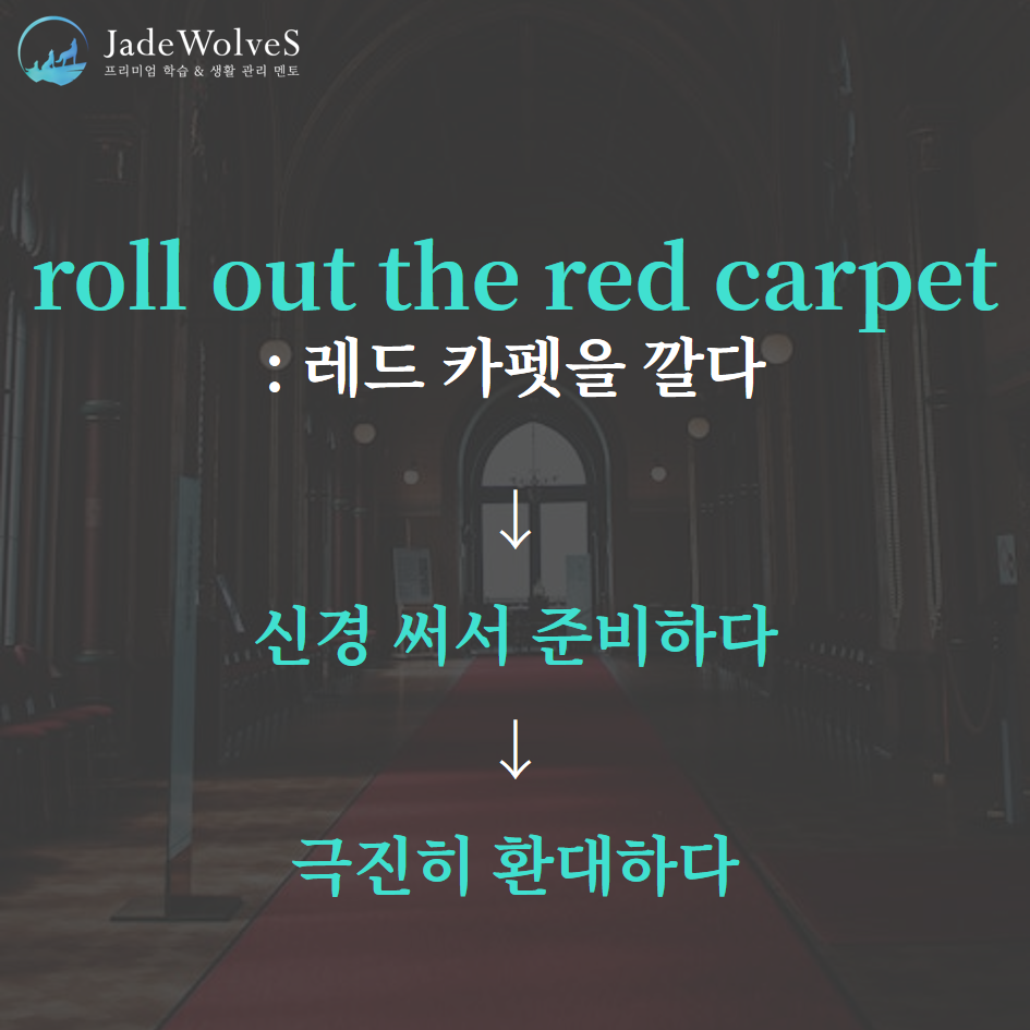 1) roll out the red carpet : "레드 카펫을 깔다"라고 해서 "극진히 환대하다"라는 의미로 사용됩니다.