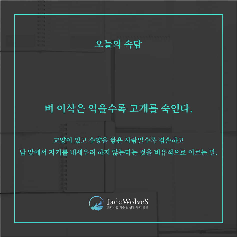 이 속담은 사람도 벼처럼 지혜와 경험이 쌓이고 인격이 성숙할수록 더욱 겸손해야 한다는 의미를 담고 있습니다. 사회적으로 성공하거나 많은 지식을 쌓게 되면 교만해지기 쉽지만, 참된 성숙은 자기 자신을 낮추고 주변을 배려하는 태도에서 나온다는 것을 강조합니다. 성숙한 사람은 자신이 가진 것을 자랑하기보다 겸손하게 행동하며, 다른 사람을 배려하는 마음을 가지게 된다는 교훈을 전달합니다.