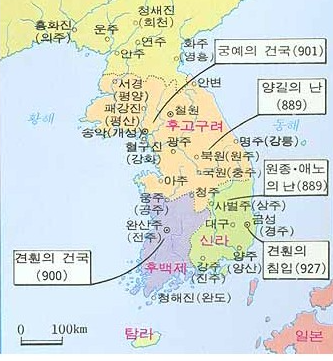 통일 신라는 중앙 정부가 왕권 승계로 대립하자 국력을 소모하면서 급격히 쇠락의 길을 걸었다. 지방에 거점을 둔 호족은 중앙 정부에서 파견한 관료의 말을 듣지 않았고 신분제에 불만이 많은 6두품과 함께 반란을 일으킨다. 수많은 호족이 통일신라에 반기를 들었다. 완산주(完山州)를 중심으로 견훤(甄萱)은 전라도와 충청도 일대를 장악하면서 백제의 전통을 잇는다며 후백제(後百濟)를 건국했다. 북쪽에서는 궁예(弓裔)를 중심으로 개성 호족 출신 왕건(王建)을 포섭하며 빠르게 세를 불려 고구려 정신을 이어받아 후고구려(後高句麗)를 건립했다.