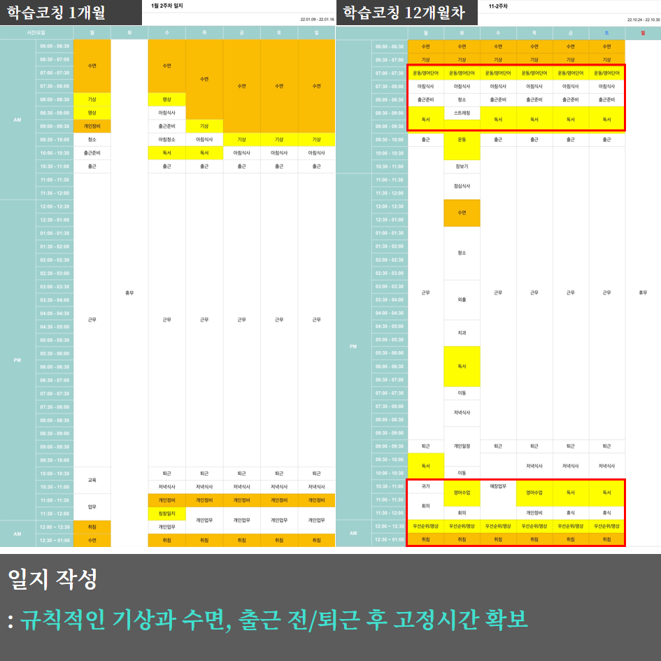 규칙적인 수면과 아침 시간을 확보하는 데 집중했습니다.