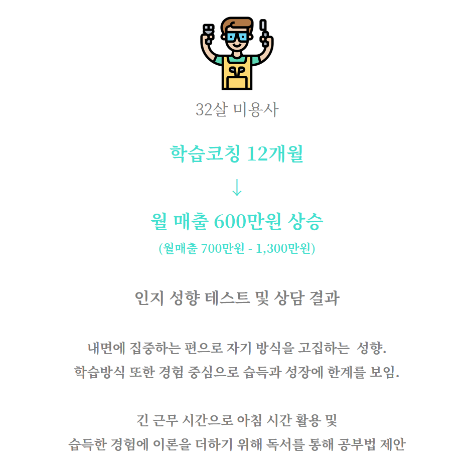 어떤 방식으로 공부해야 능력과 매출이 상승할지에 대한 고민을 하고 계신 분이었습니다.