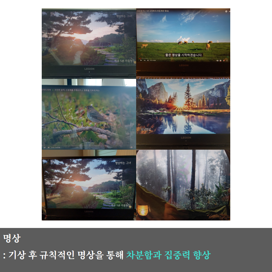 하루 일과 정리와 아침에 명상 시간을 확보하는 데 집중했습니다.
