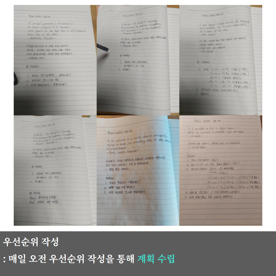 노트 정리(매일 인강 2개 수강)로 규칙적인 학습량을 유지하는 데 집중했습니다.