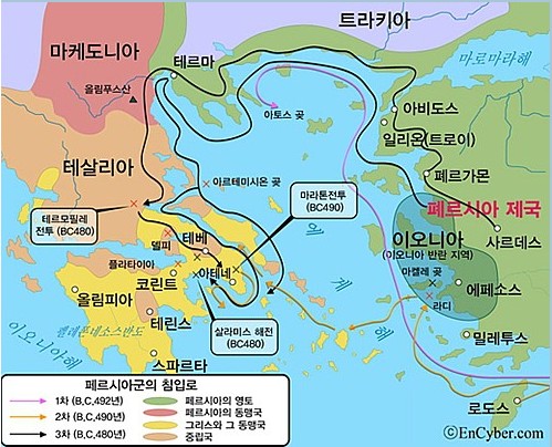 기원전 5세기 초반 페르시아 제국은 중동과 소아시아를 넘어 유럽 방면으로 팽창하면서 그리스 도시국가들을 복속시키려 하였습니다. 이 과정에서 페르시아는 그리스 도시국가들에게 복종을 강요했고, 그리스는 페르시아에 저항하며 정치적 독립성을 유지하고자 노력했습니다.