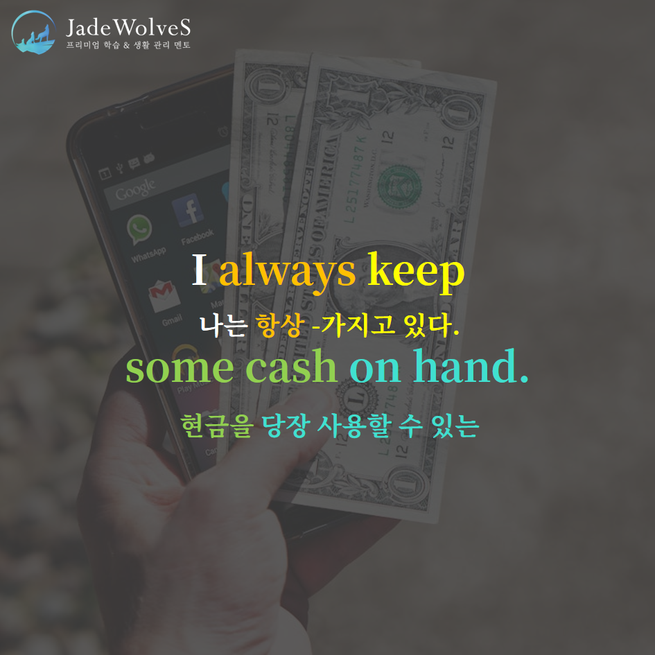 2) on hand : "손 위에"라고 해서 "당장 이용할 수 있는"이라는 의미로 사용됩니다.