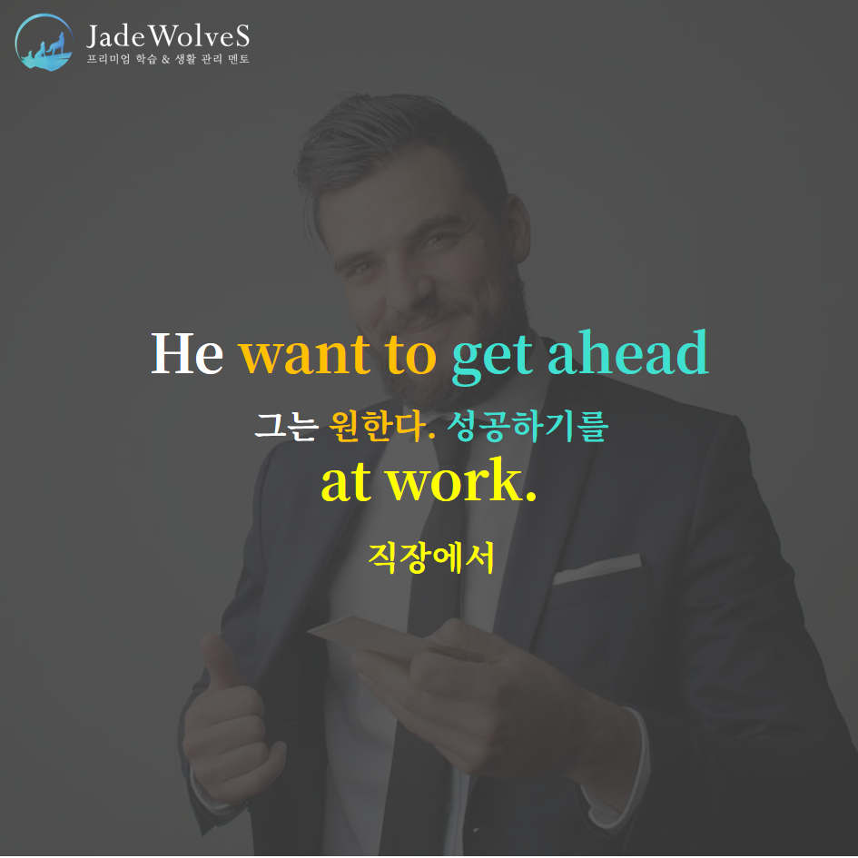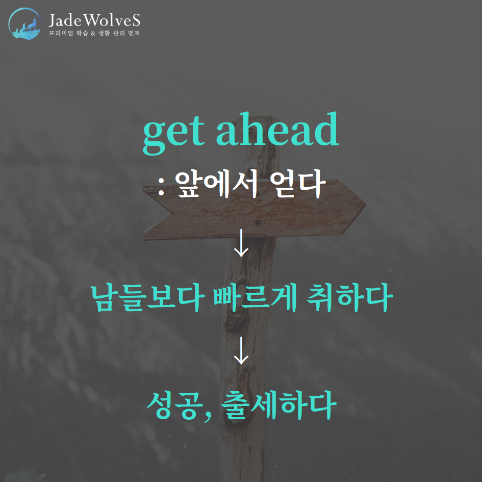 1) get ahead : "앞에서 얻다"라고 해서 "성공, 출세하다"라는 의미로 사용됩니다.