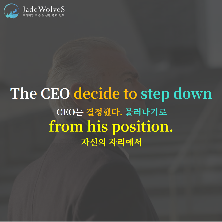 2) step down : "전성기에서 내려오다"라고 해서 "물러나다"라는 의미로 사용됩니다.
