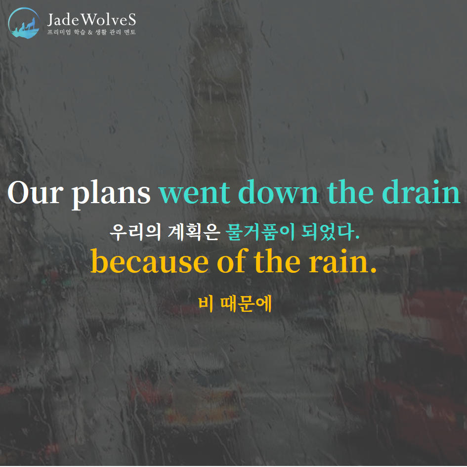 2) go down the drain : "배수구로 내려가다"라고 해서 "물거품, 헛수고가 되다"라는 의미로 사용됩니다.