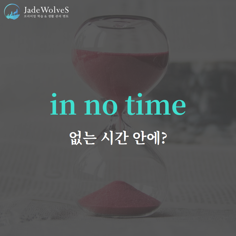 2) in no time : "없는 시간 안에"라고 해서 "순식간에"라는 의미로 사용됩니다.