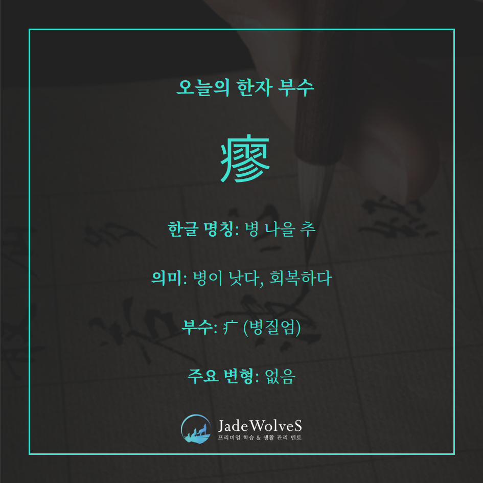 | 瘳癒 | 瘳(추·나아지다) + 癒(유·치유되다) | 점차 회복함 |