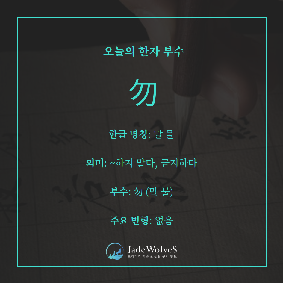 손이나 입을 가로막아 제지하는 모습을 본뜬 상형으로, ‘~하지 말라’는 금지·부정의 뜻을 가집니다.