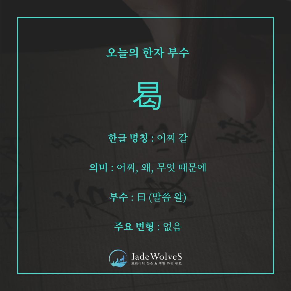 의문을 나타내는 고대 문자 어휘로 ‘어찌, 왜, 언제’를 뜻합니다. 뒤에 음부로도 자주 쓰여 파생자가 많습니다.