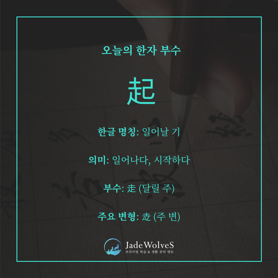 走(주·나아가다/뜻부) + 己(기·자기/음부)로 ‘몸을 일으켜 움직이다’에서 ‘일어나다, 시작하다’의 뜻으로 사용되고 있습니다.