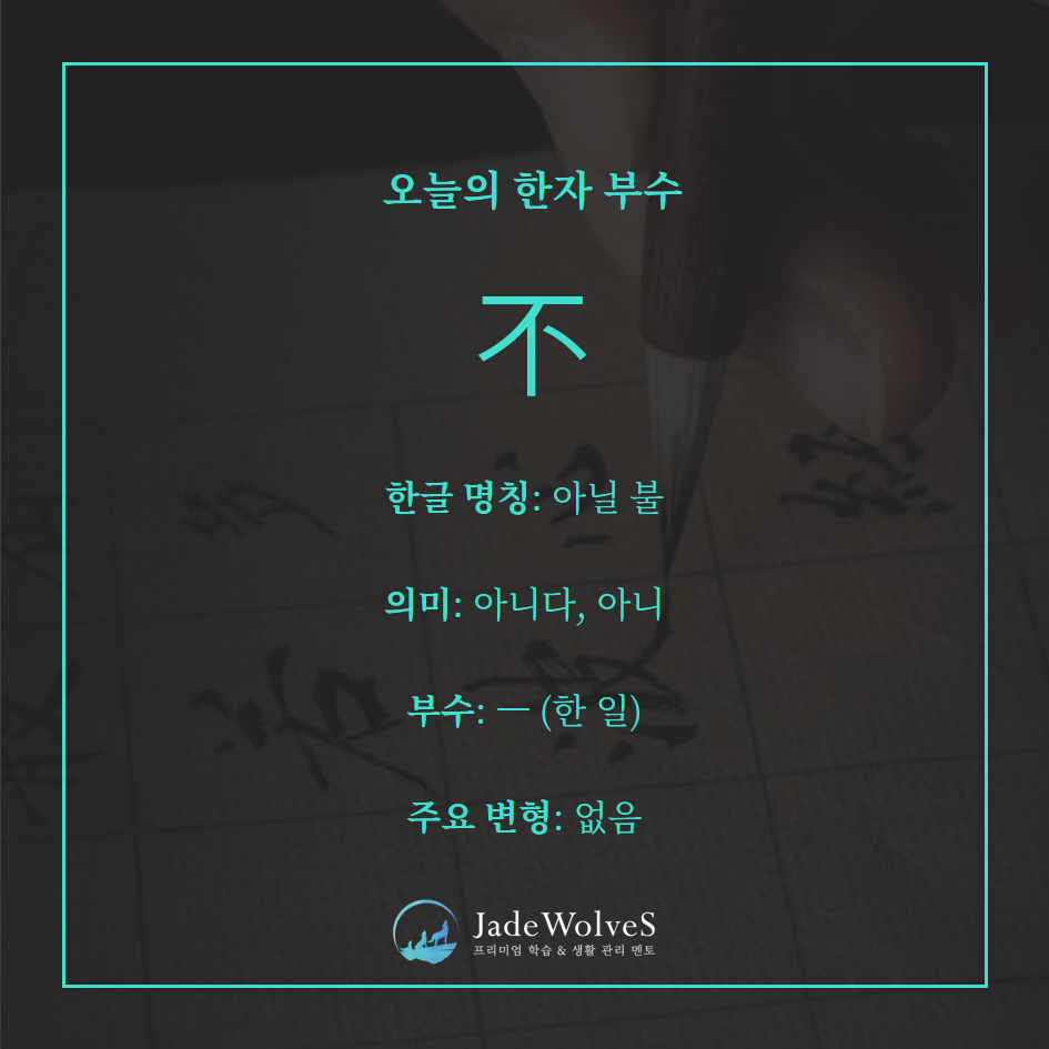 지사적 글자. 윗획(一)이 아래 작용을 가로막는 이미지에서 ‘아니다, 하지 않다’의 부정 뜻이 생겼습니다.