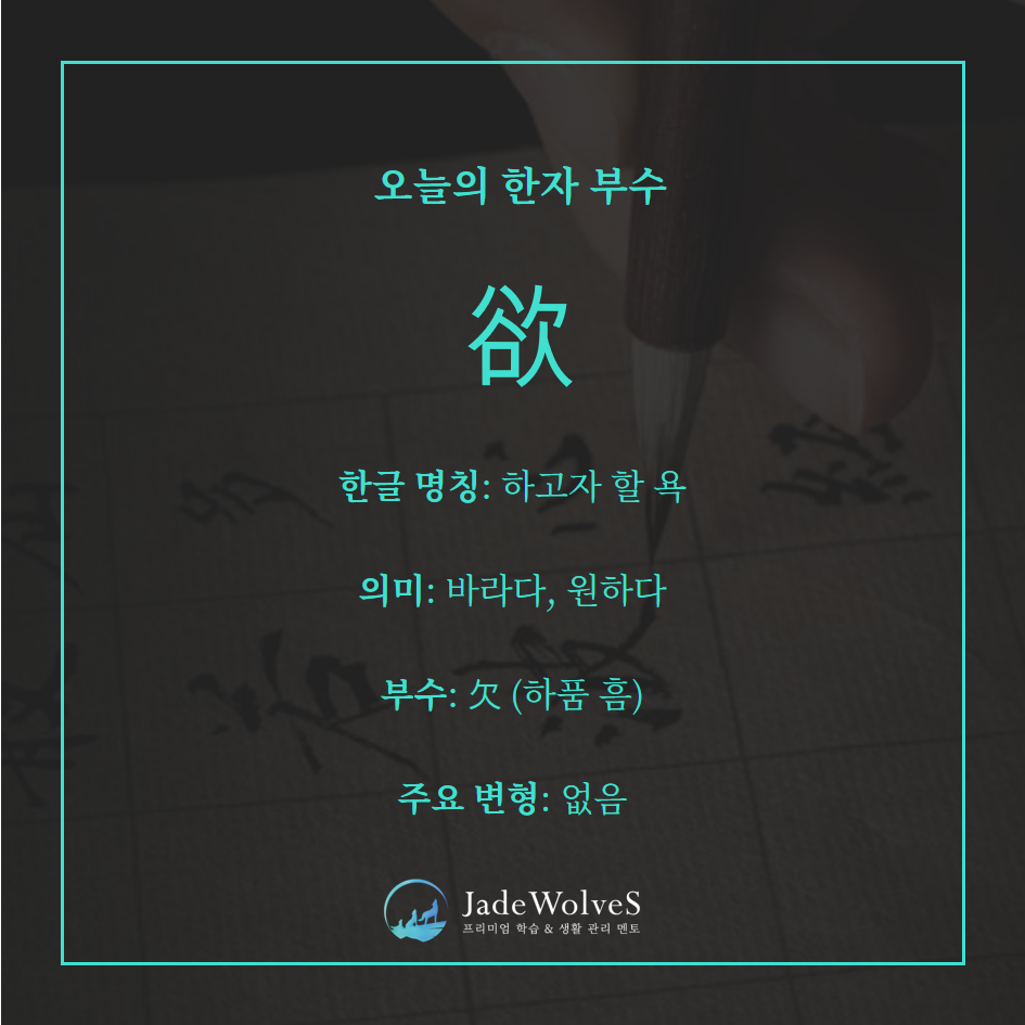 | 欲望 | 欲(욕·하고자 하다) + 望(망·바라보다) | 욕망 |