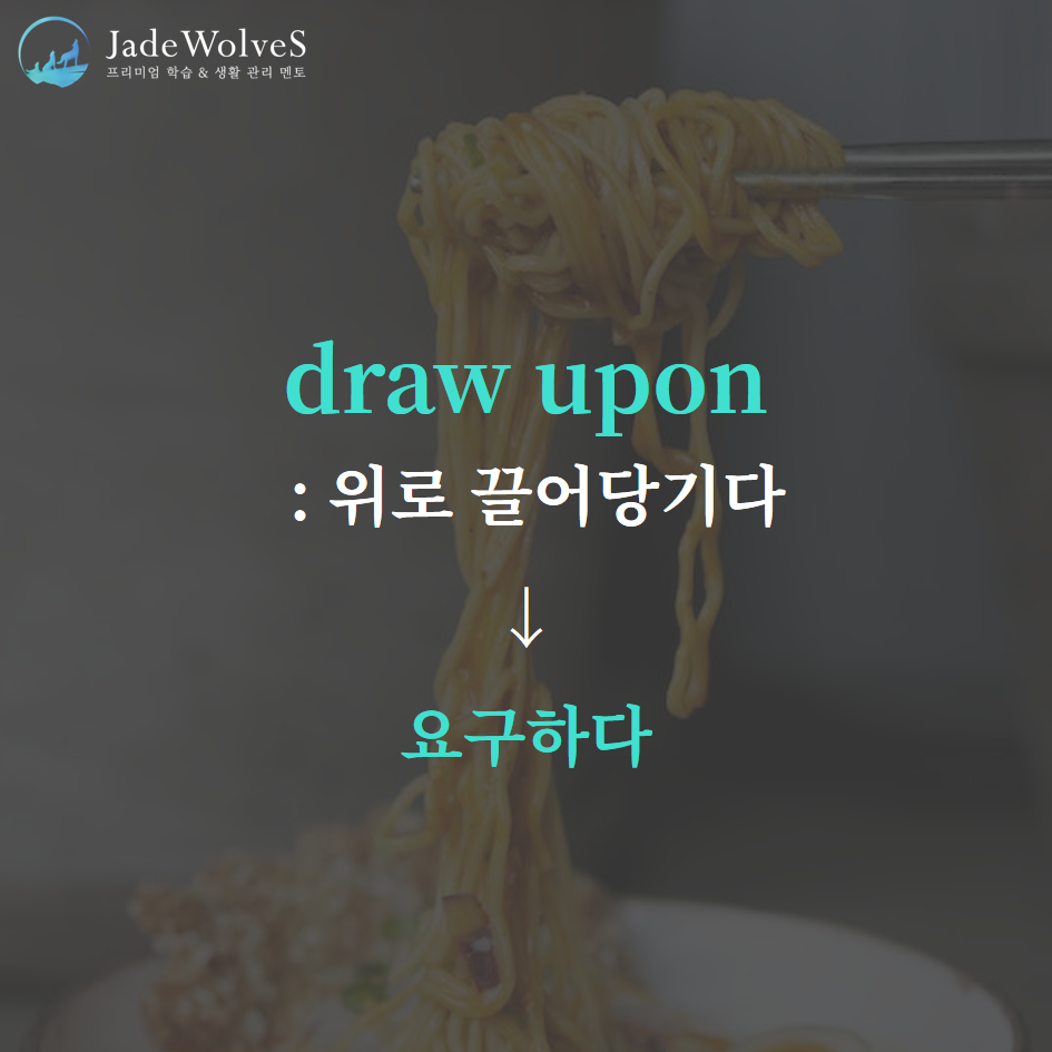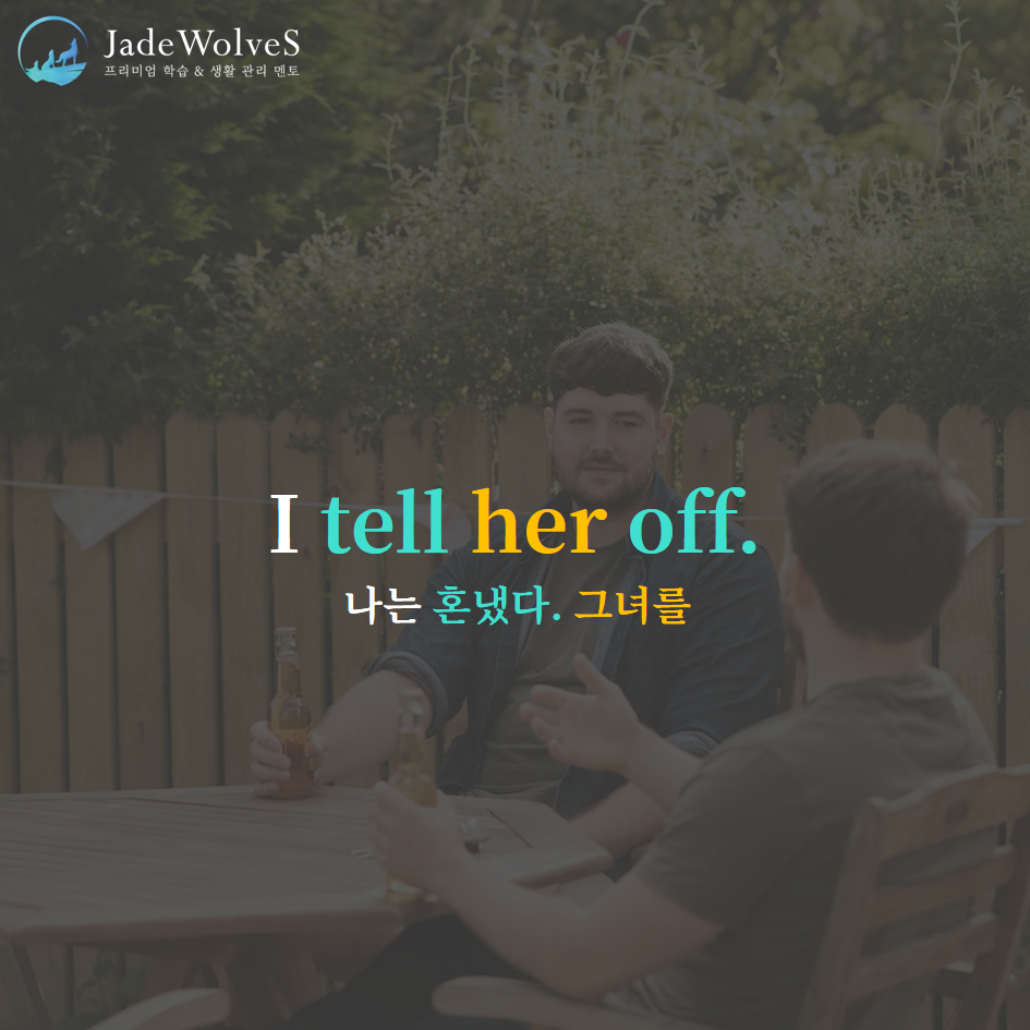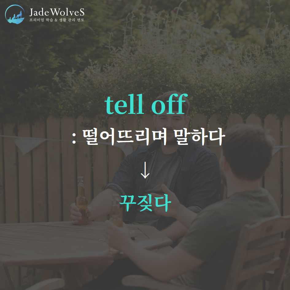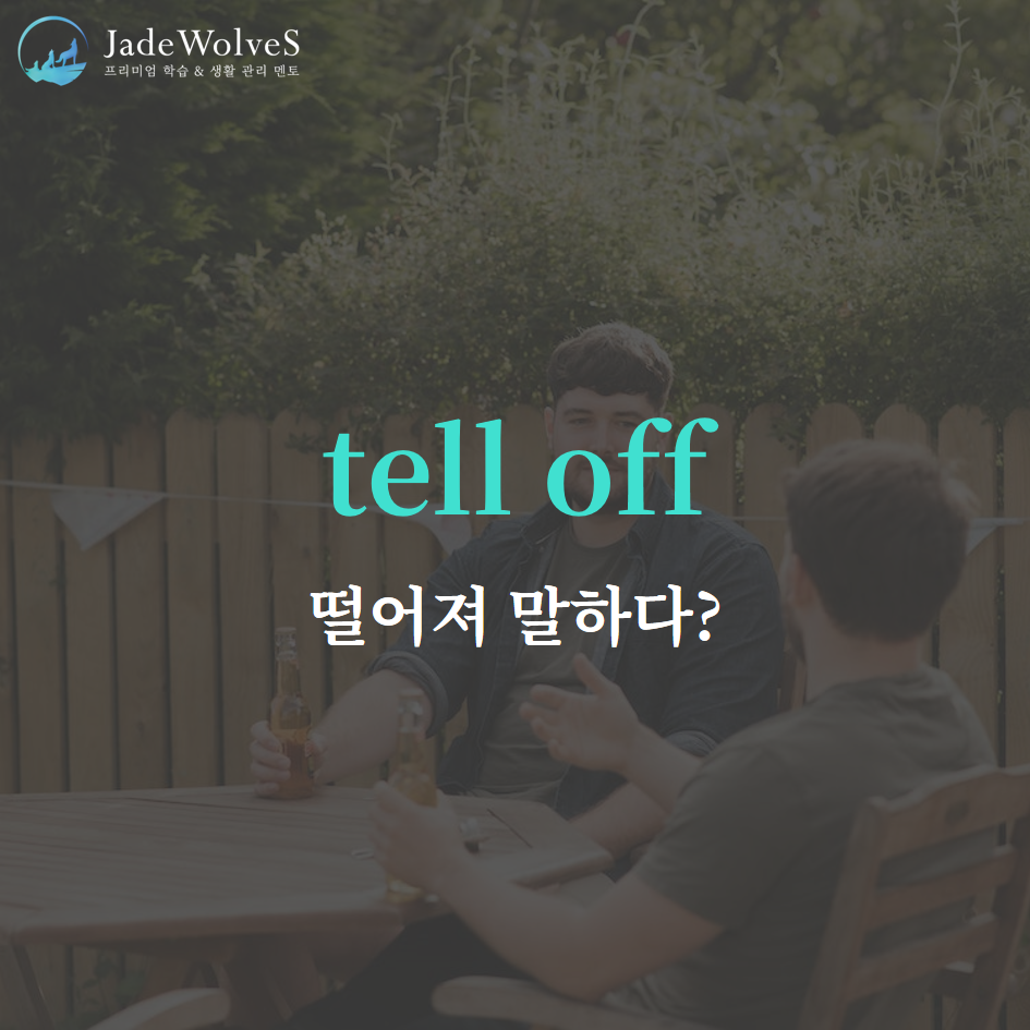 청랑 영어 식견/청랑 영어 단어 청랑의 영숙어 54 JWS 2023. 9. 25. 20:00 원어민들이 회화로 자주 사용하는 숙어에 대해 알아보겠습니다. 1) tell off : "떨어뜨리며 말하다"라고 해서 "꾸짖다"라는 의미로 사용됩니다.2) draw upon : "위로 끌어당기다"라고 해서 "요구하다"라는 의미로 사용됩니다. 위 숙어를 이용해 여러분만의 문장을 하나씩 만들어 보세요!