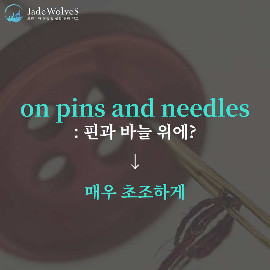 청랑 영어 식견/청랑 영어 단어 청랑의 영숙어 47 JWS 2023. 9. 11. 20:00 원어민들이 회화로 자주 사용하는 숙어에 대해 알아보겠습니다. 1) on pins and needles : "핀과 바늘 위에"라고 해서 "매우 초조하게"라는 의미로 사용됩니다.2) taper off : "가늘어져 떨어지다"라고 해서 "차차 끊다"라는 의미로 사용됩니다. 위 숙어를 이용해 여러분만의 문장을 하나씩 만들어 보세요!