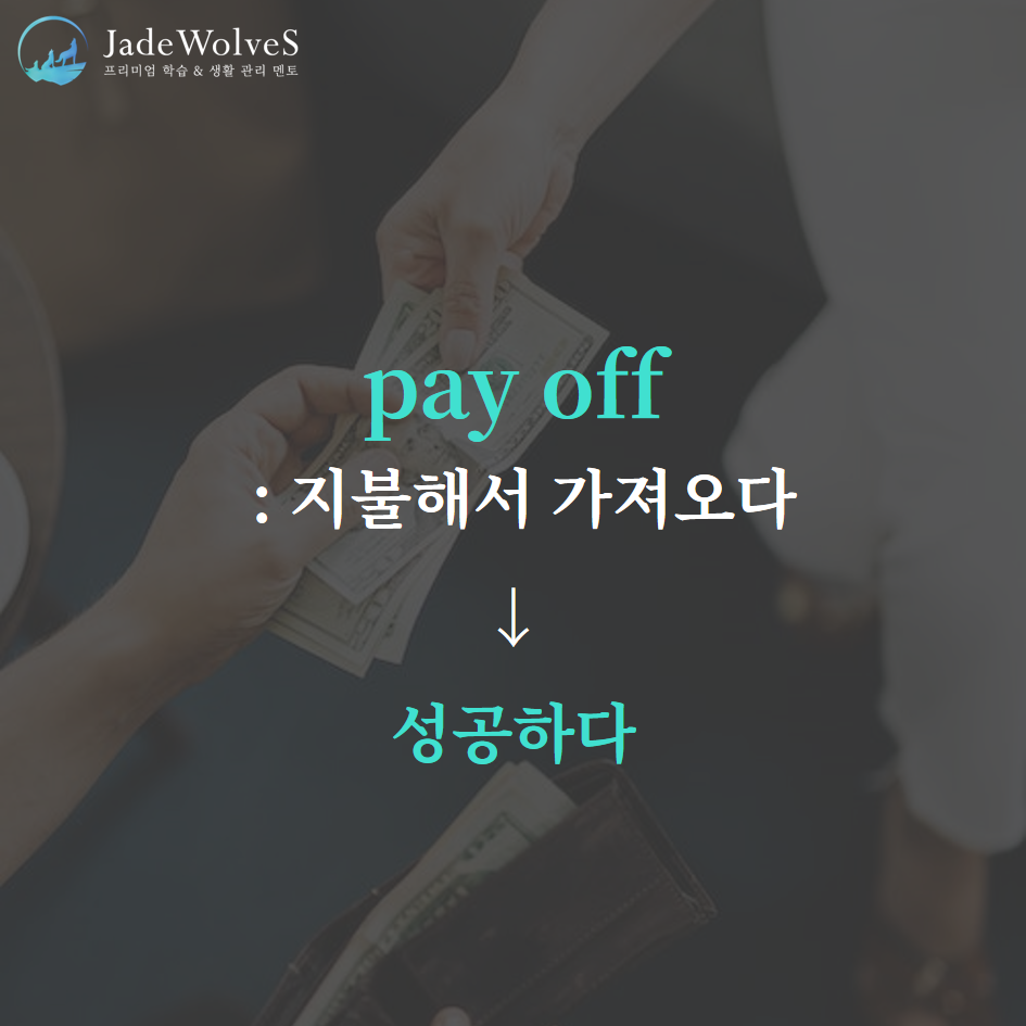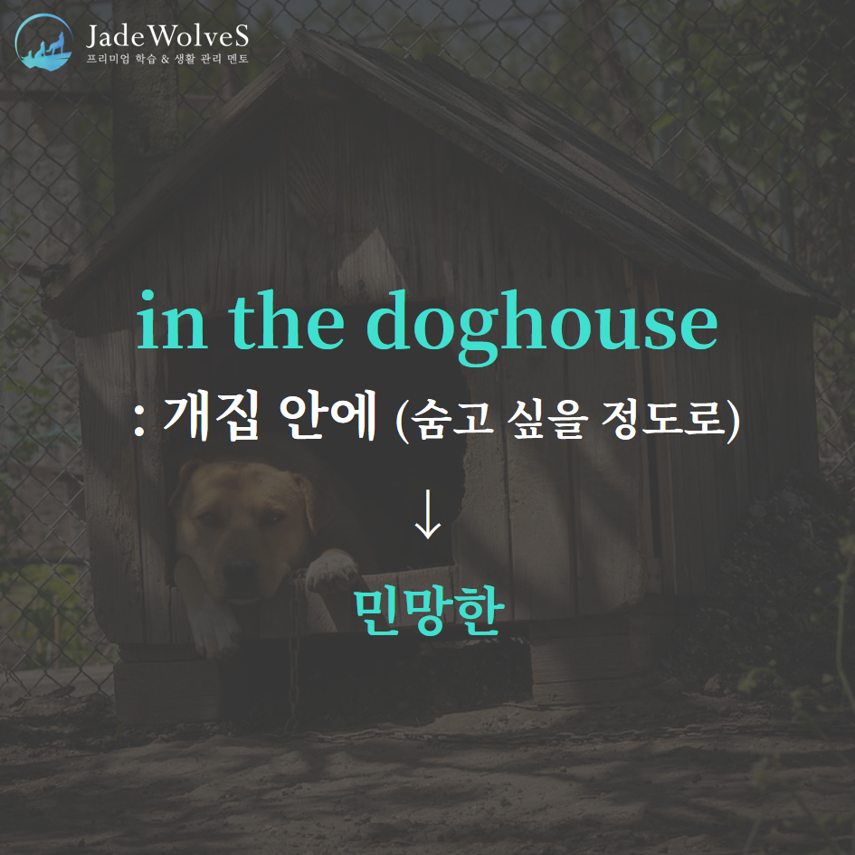 청랑 영어 식견/청랑 영어 단어 청랑의 영숙어 60 JWS 2023. 10. 7. 20:00 원어민들이 회화로 자주 사용하는 숙어에 대해 알아보겠습니다. 1) pay off : "지불해서 가져오다"라고 해서 "성공하다"라는 의미로 사용됩니다.2) in the doghouse : "개집 안에"라고 해서 "민망한"이라는 의미로 사용됩니다. 위 숙어를 이용해 여러분만의 문장을 하나씩 만들어 보세요!