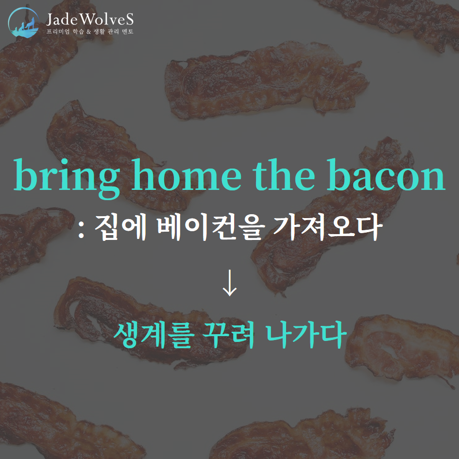 청랑 영어 식견/청랑 영어 단어 청랑의 영숙어 40 JWS 2023. 8. 28. 20:00 원어민들이 회화로 자주 사용하는 숙어에 대해 알아보겠습니다. 1) bring home the bacon : "집에 베이컨을 가져오다"라고 해서 "생계를 꾸려 나가다"라는 의미로 사용됩니다.2) on the tip of one's tongue : "누군가의 혀 끝에 있는 - 입에서 나가지 못한 말"이라고 해서 "하고 싶은 말이 입에서 맴돌다"라는 의미로 사용됩니다. 위 숙어를 이용해 여러분만의 문장을 하나씩 만들어 보세요!