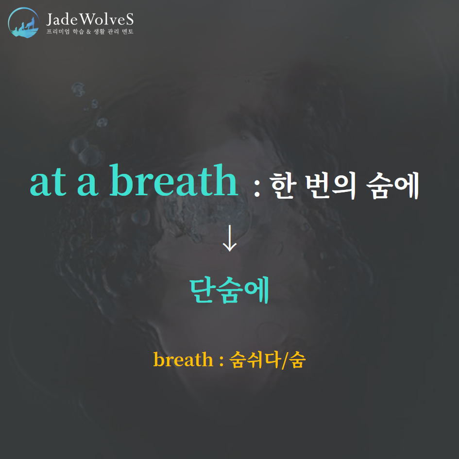 청랑 영어 식견/청랑 영어 단어 청랑의 영숙어 64 JWS 2023. 10. 15. 20:00 원어민들이 회화로 자주 사용하는 숙어에 대해 알아보겠습니다. 1) at a breath : "한 번의 숨에"라고 해서 "단숨에"라는 의미로 사용됩니다.2) at a gift : "기증품으로"라고 해서 "공짜로"라는 의미로 사용됩니다. 위 숙어를 이용해 여러분만의 문장을 하나씩 만들어 보세요!