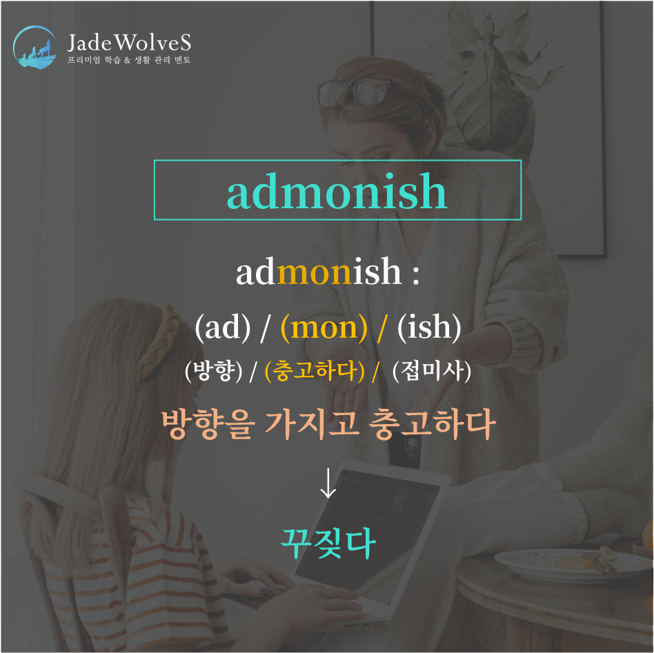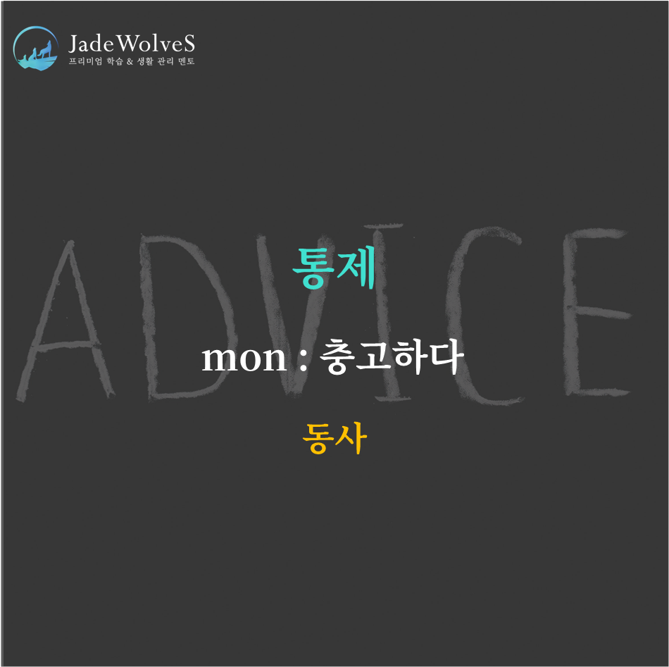 "mon : 충고하다"라는 의미로 통제를 나타냅니다.