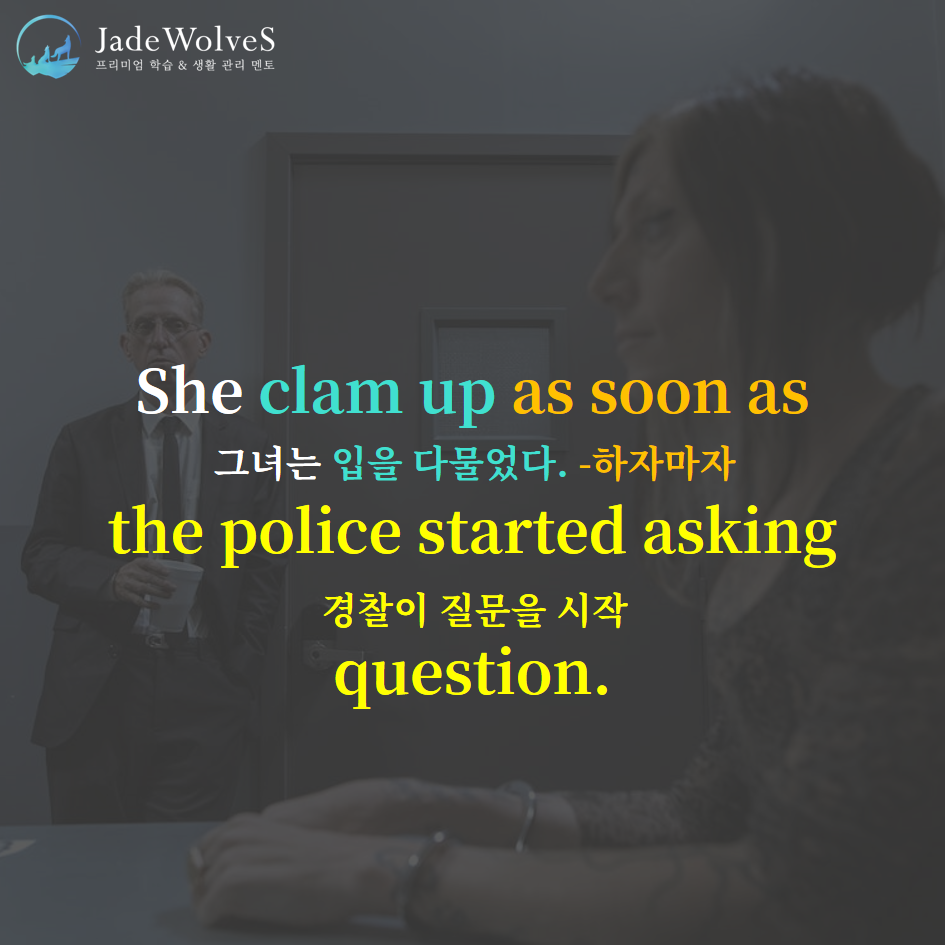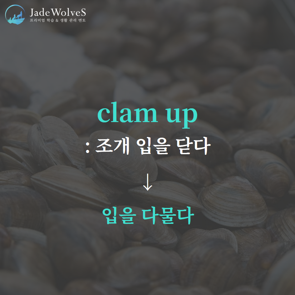 2) clam up : "조개 입을 닫다"라고 해서 "입을 다물다"라는 의미로 사용됩니다.