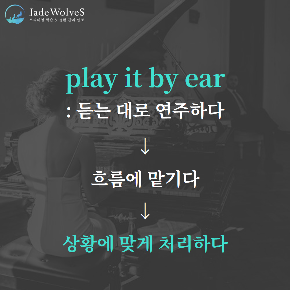 1) play it by ear : "듣는 대로 연주하다"라고 해서 "상황에 맞게 처리하다"라는 의미로 사용됩니다.