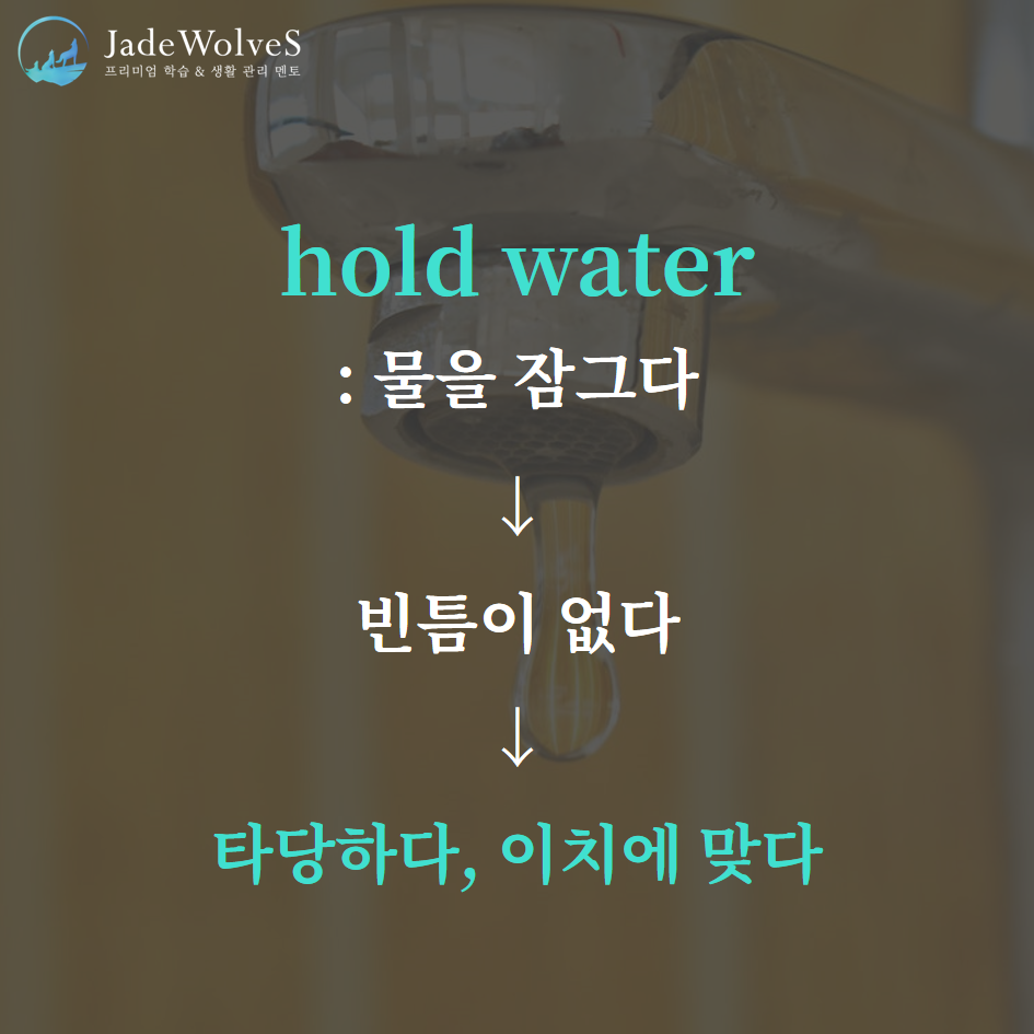 청랑 영어 식견/청랑 영어 단어 청랑의 영숙어 : hold water/make a scene JWS 2024. 5. 11. 20:00 원어민들이 회화로 자주 사용하는 숙어에 대해 알아보겠습니다.1) hold water : "물을 잠그다"라고 해서 "타당하다, 이치에 맞다"라는 의미로 사용됩니다.2) make a scene : "한 장면을 만들다"라고 해서 "소란을 피우다"라는 의미로 사용됩니다.위 숙어를 이용해 여러분만의 문장을 하나씩 만들어 보세요!