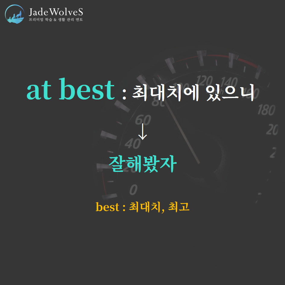 청랑 영어 식견/청랑 영어 단어 청랑의 영숙어 70 JWS 2023. 10. 27. 20:00 원어민들이 회화로 자주 사용하는 숙어에 대해 알아보겠습니다. 1) at best : "최대치에 있으니"라고 해서 "잘해봤자"라는 의미로 사용됩니다.2) in a haze : "실안개 속에"라고 해서 "몽롱하여, 오리무중으로"라는 의미로 사용됩니다.위 숙어를 이용해 여러분만의 문장을 하나씩 만들어 보세요!