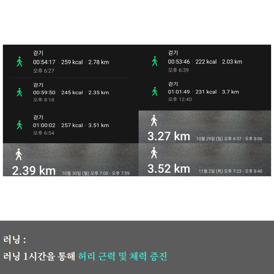 허리 근력과 스트레스 해소를 위해 러닝 미션을 제안했습니다.