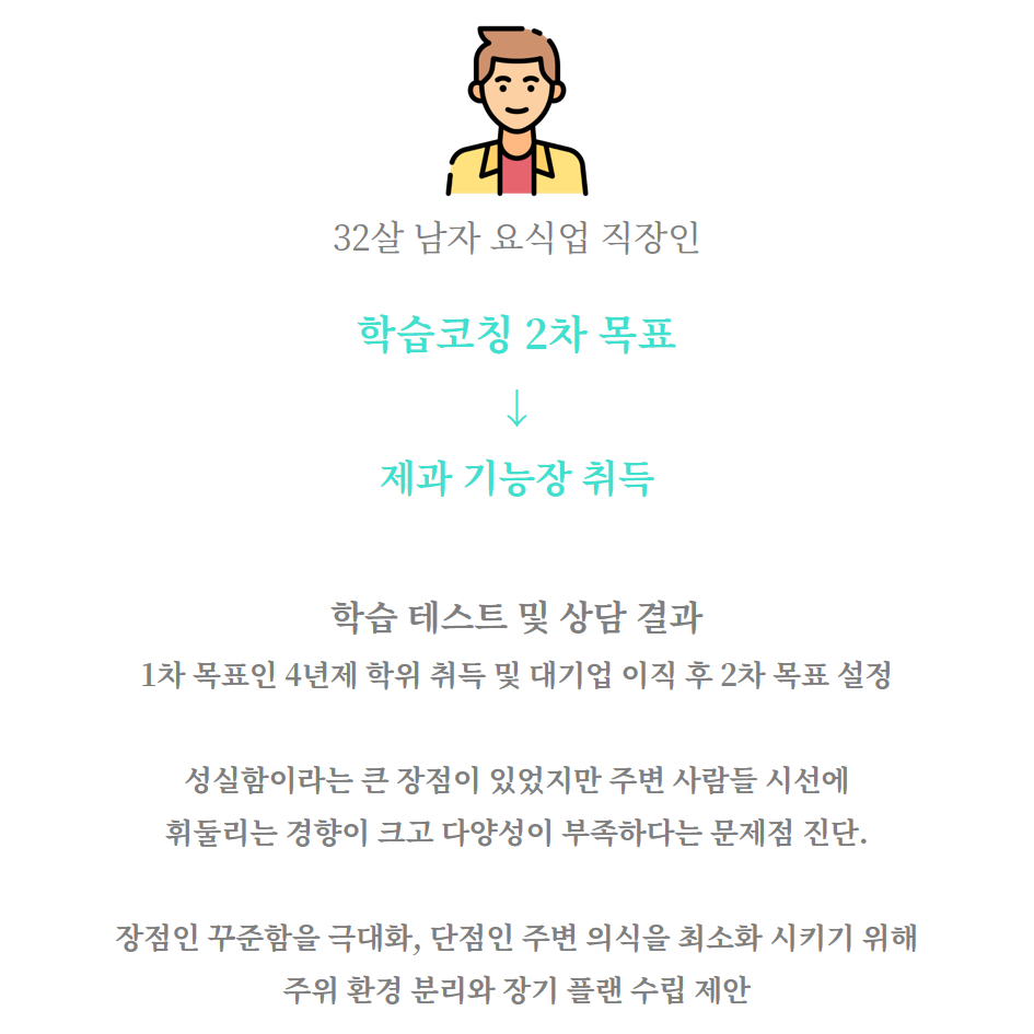4년제 학위 취득 및 대기업 이직을 1차 목표로 달성했었습니다.