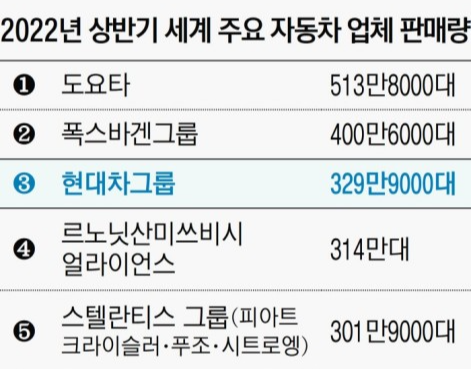 현대차는 한국을 대표하는 자동차 기업이다. 현대그룹 초대 회장 정주영은 한국전쟁 이후 미국 자동차를 수리하며 자동차 산업에 관심을 가졌다. 정주영은 박정희 정부의 중화학 공업 지원을 통해 자동차를 생산하기 시작했다. 그 이후 현대차는 한국이 외환 위기(IMF)를 맞으며 위기에 직면했으나, 현대차의 맞수기도 한 KIA를 인수하며 내수시장에서 벗어나 글로벌 기업으로 성장한다. 바통을 이어받은 정몽구 회장은 글로벌 자동차 탑 5안에 드는 목표를 세우며 현대차의 질을 개선하는 데 노력했다. 이후 정의선 회장에 와서는 변화하는 시대에 맞춰 전기차, 수소차, 하이브리드차 등 새로운 에너지원으로 하는 자동차를 개발했다. 현재 현대차는 자동차 시장을 넘어 로봇 시장으로 사업을 확장하며 세계적 자동차 회사로 거듭나고 있다.